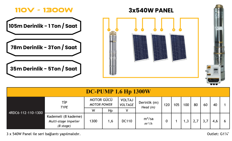 Model: DC-PUMP 1.6 Hp 1300W