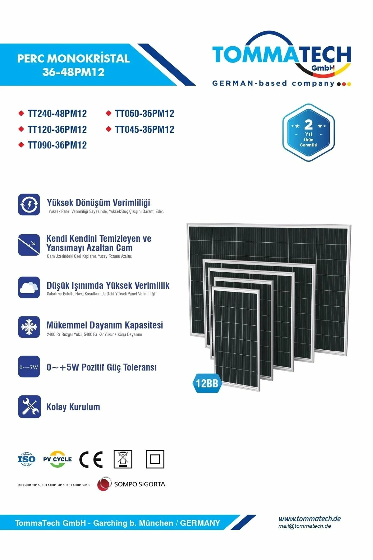 TommaTech 90Wp M12 36PM HC-MB Güneş Paneli