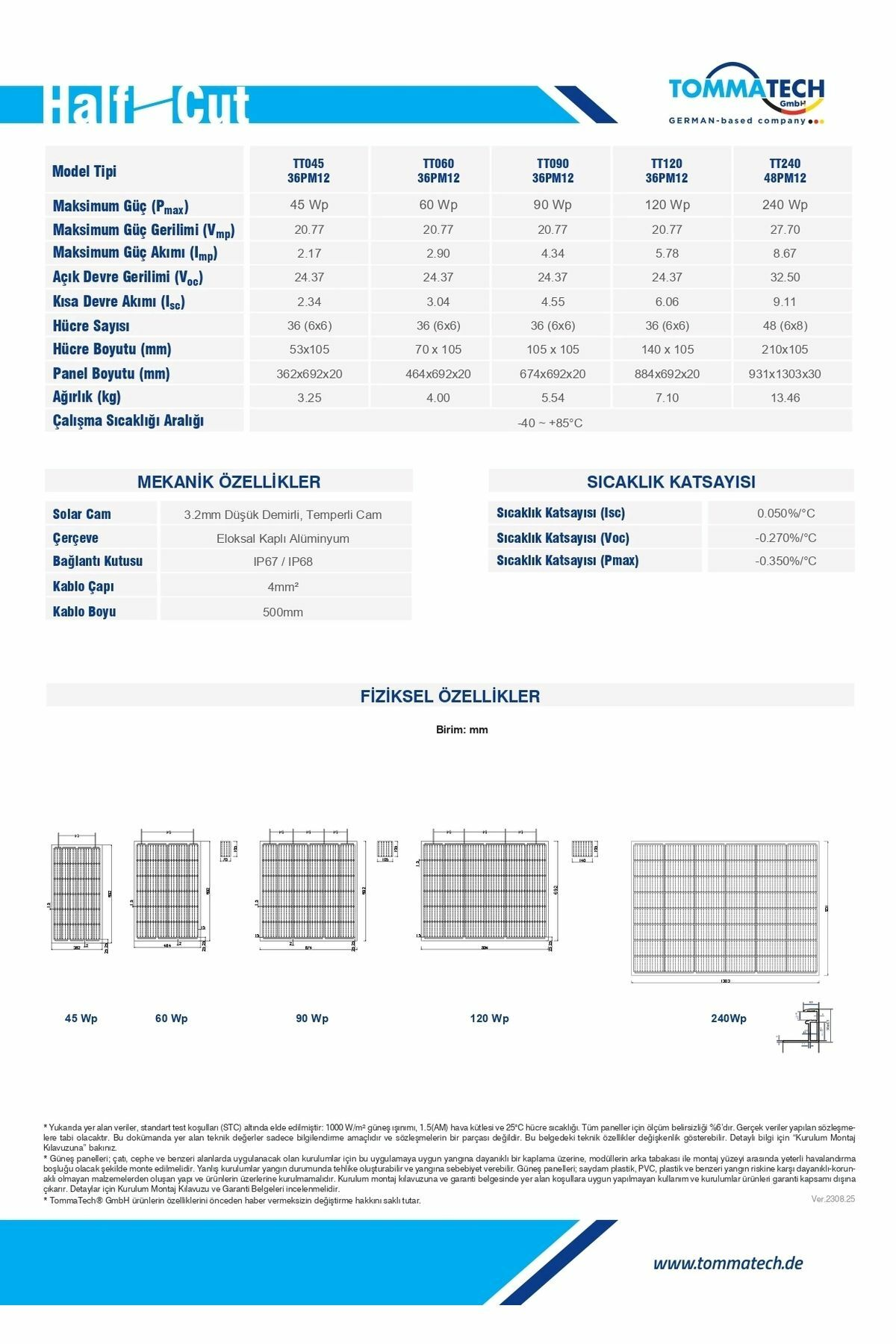 TommaTech 120WP 36 Hücreli HC-MB Güneş Paneli